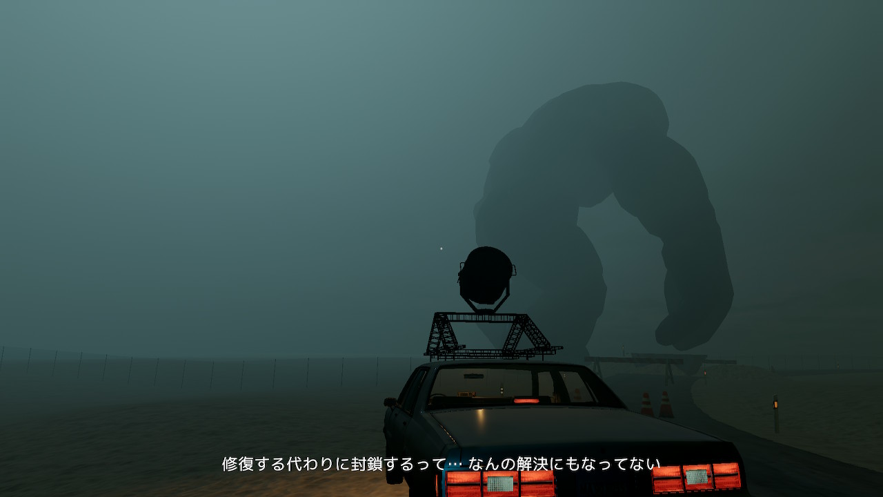遊んでいる時間のほとんどが一人で目的地を探して走ってる時間で、主人公の独白で通りがかった場所にまつわる話が聞けるくらいだから、アドベンチャーというよりは雰囲気を楽しむドライブシミュレーションだった。